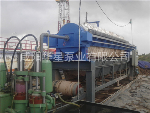 壓濾機進料的專用泵。壓濾機操作前須進行整機檢查:查看濾布有無打折或重疊現象,電源是否已正常連接。檢 查后即可進行壓緊操作,先按一下“啟動“按鈕,油泵開始工作,然后再按一下“壓緊”按 鈕,活塞推動壓緊板壓緊,當壓緊力到達調定高點壓力后,液壓系統自動跳停。